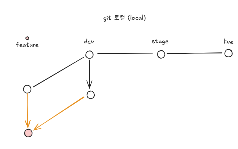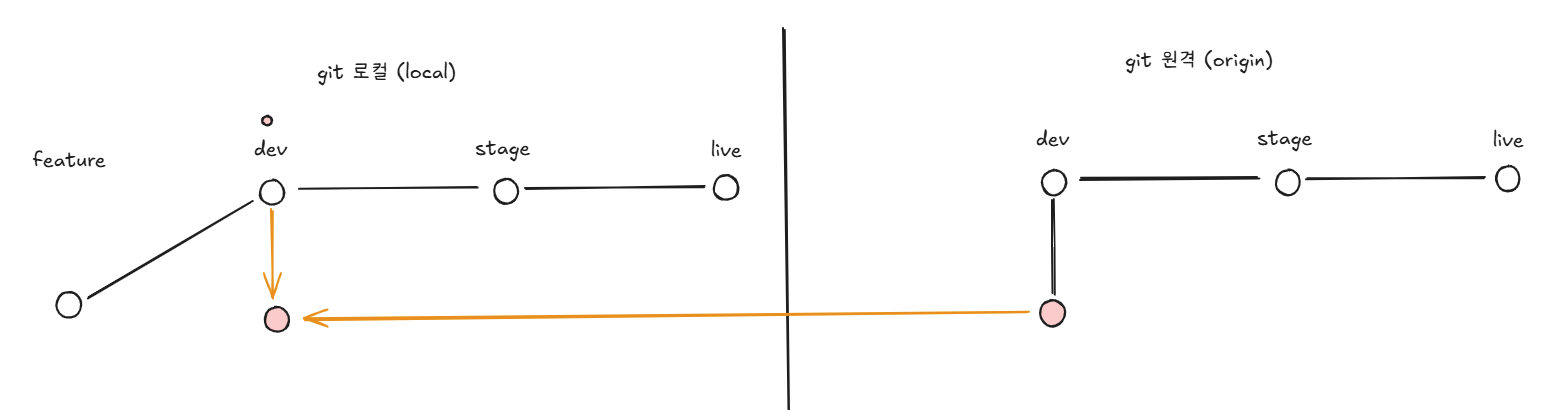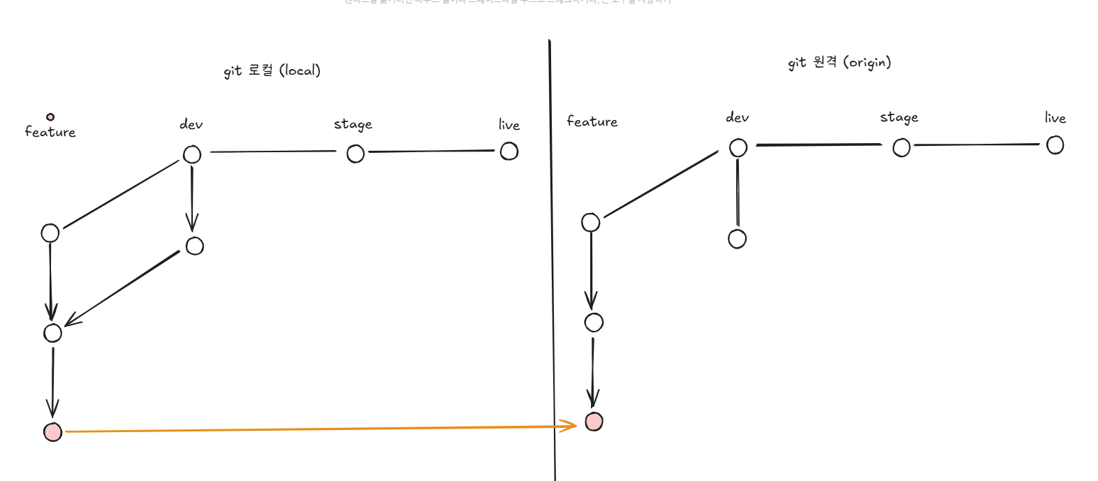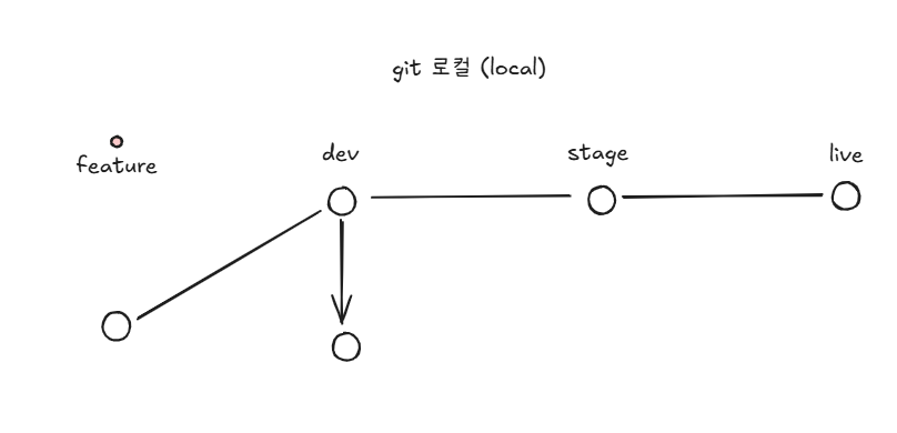 기본적으로 운영되는 브랜치는 개발(Dev) → 스테이징(Stage) → 운영(Live) 흐름을 따릅니다.