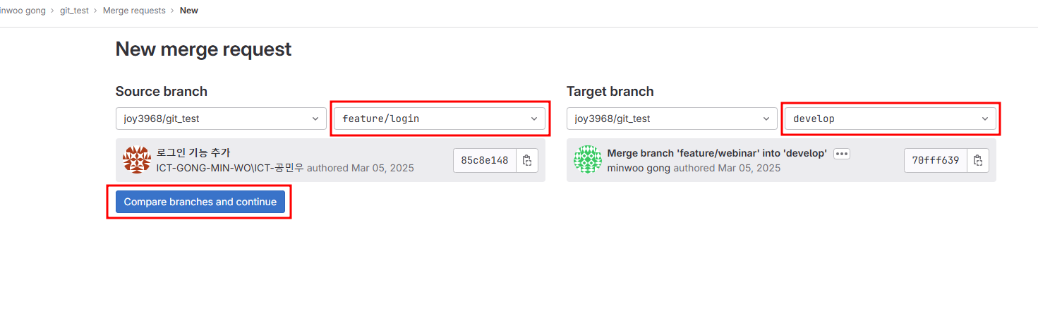 1-2. dev 브랜치 기반으로 feature 브랜치 생성